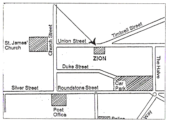 mini-roundabout and right again at the next to Duke Street car-park. From there Zion Chapel is an easy